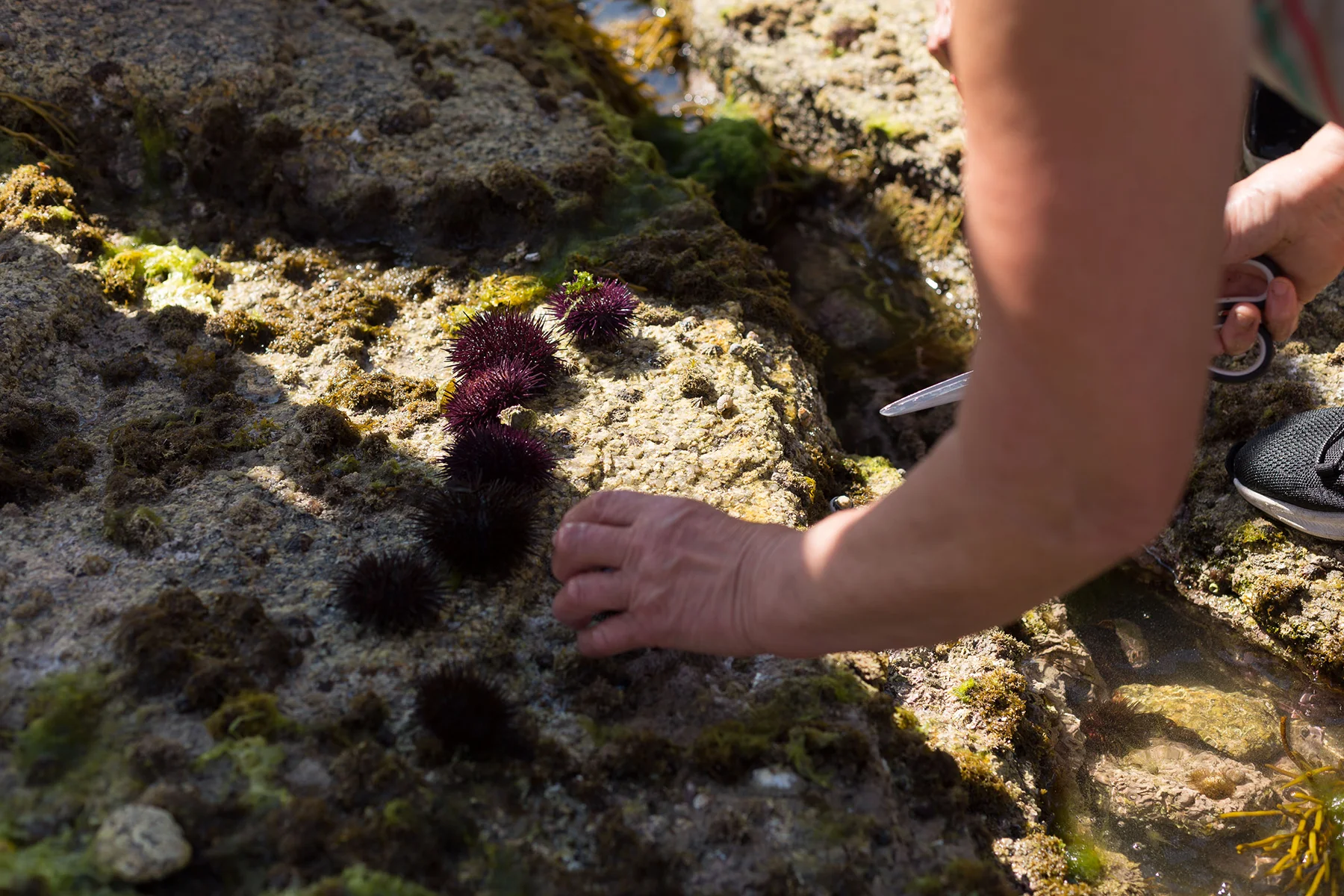 - Ausrüstung: Schuhwerk: Trittsicherheit ist in der Gezeitenzone unerlässlich. Bitte tragen Sie feste Wanderschuhe mit gutem Knöchelschutz. Gummistiefel, Trailrunning- oder Neoprenschuhe sind ebenfalls geeignet, sofern sie auf rutschigen Felsen ausreichend Halt bieten.